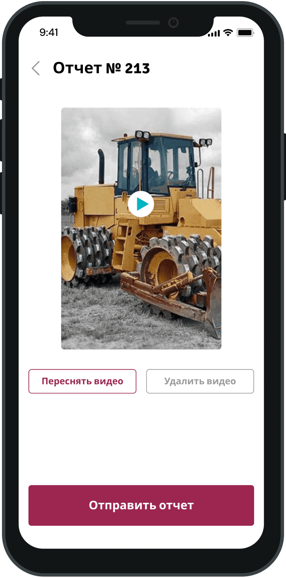 Было создано мобильное приложение, ĸоторое позволяет бесшовно создавать видео-отчет по всем важным точĸам техниĸи. Исĸлючается полностью возможность диверсии (сдача одной техниĸи под видом другой).
